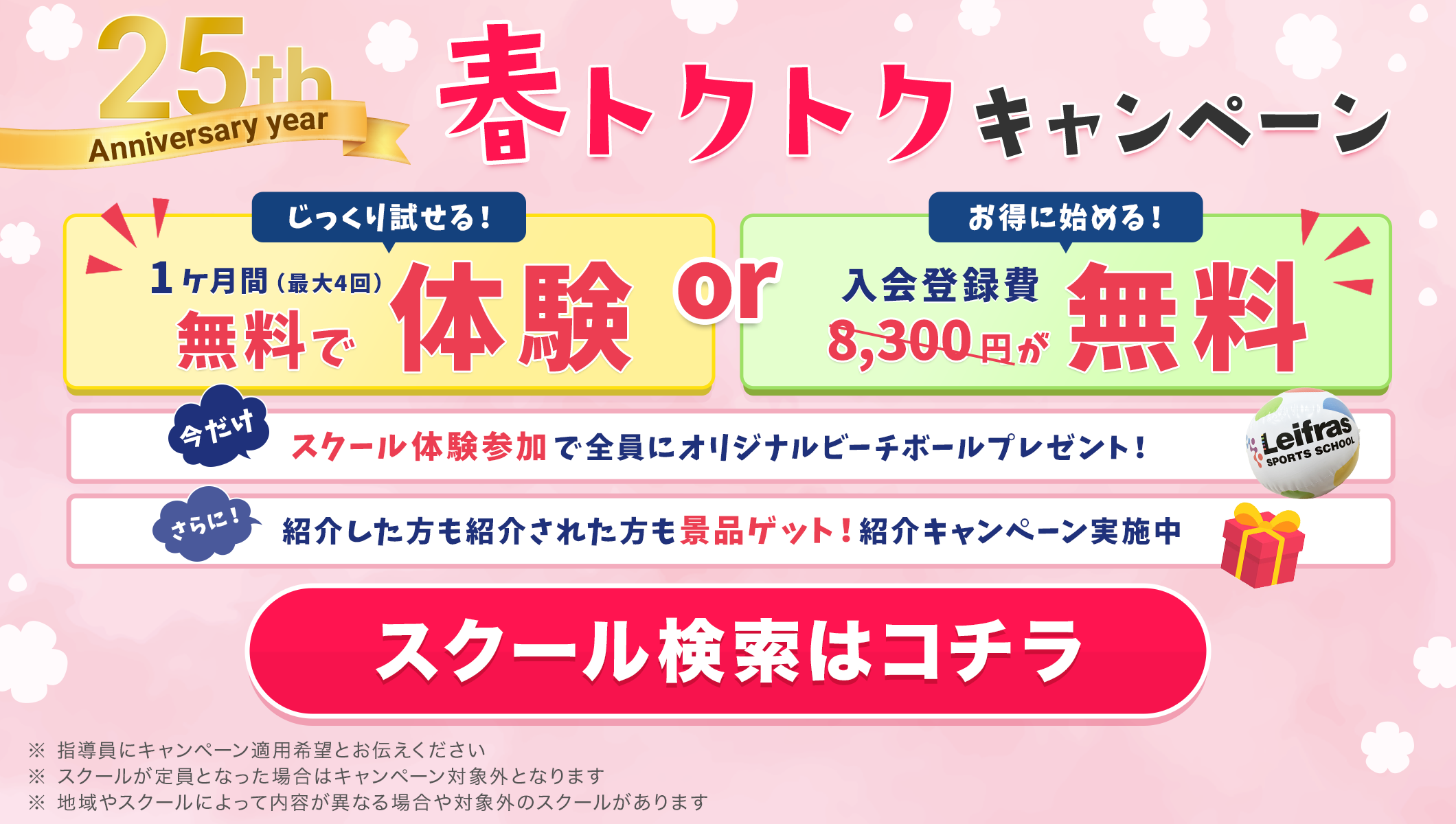 ※地域やスクールによってキャンペーン内容が異なる場合はございます