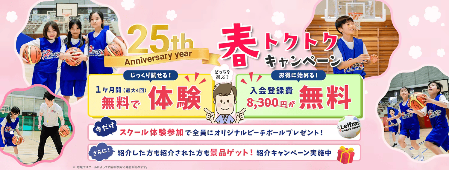バスケットボールスクールハーツでは、現在、実施中の「どっちを選ぶ?春トクキャンペーン」がパワーアップして3月1日(日)より「春トクトクキャンペーン」がスタートします!